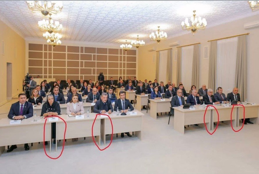 Yayılan fotolarda deputatların iki nəfərlik masaların birləşdirildiyi formada, nisbətən sıx şəkildə əyləşdiyi görünür. Masaların konstruksiyası və düzülüşü sosial şəbəkə istifadəçiləri tərəfindən “məktəb partası”na bənzədilib. Xüsusilə bəzi kadrlarda 4–5 nəfərin iki masa ətrafında oturması diqqət çəkir və bu məqam tənqidlərin əsas mövzusuna çevrilib.