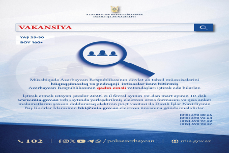 İştirak etmək istəyən şəxslər 2026-cı il fevralın 10-dan martın 10-dək Daxili İşlər Nazirliyinin rəsmi internet saytında — www.mia.gov.az ünvanında yerləşdirilmiş elektron ərizə formasını və qısa anket məlumatlarını şəxsən dolduraraq bki@mia.gov.az elektron poçt ünvanına göndərməlidirlər.