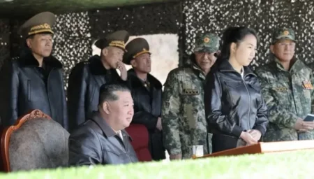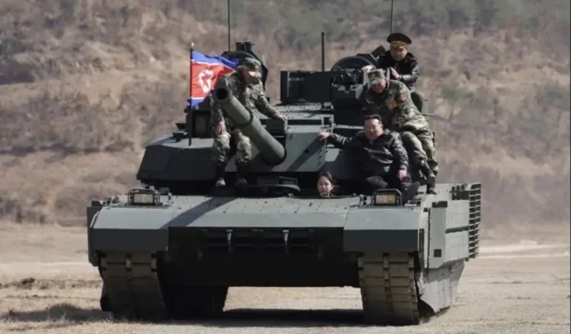 Kim Çen In və qızı Cu Ae ölkənin yeni nəsil döyüş tankının sınaqdan keçirildiyi genişmiqyaslı hərbi təlimdə iştirak ediblər.
