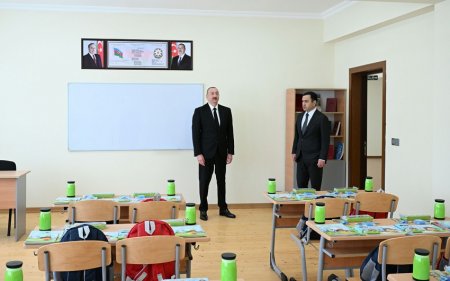 İlham Əliyev Xırdalan şəhərində tam orta məktəbin yeni binasının açılışında iştirak edib - FOTOLAR
