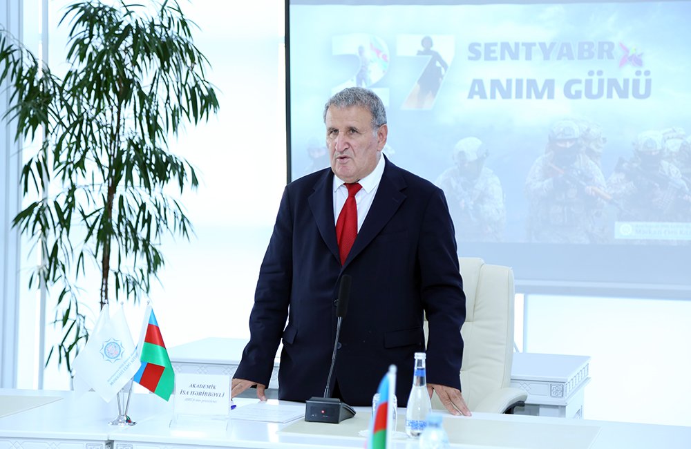 Tədbiri giriş nitqi ilə açan AMEA-nın prezidenti akademik İsa Həbibbəyli artıq Vətən müharibəsində qələbəmizin 5 illiyinin qeyd olunduğunu, tariximiz, dövlətçiliyimiz üçün böyük əhəmiyyətə malik Vətən müharibəsi, Qarabağ savaşı xalqımızın, müstəqil Azərbaycan dövlətinin tarixində ən böyük, şanlı və şərəfli səhifələrdən birini təşkil etdiyini vurğulayıb. "Müzəffər Ali Baş Komandanımız İlham Əliyevin rəhbərliyi ilə qəhrəman ordumuz 30 il işğal altında qalmış qədim Azərbaycan torpaqlarını azad etdi. Bu, tarix boyu qazandığımız ən böyük qələbə və nəhəng tarixi hadisədir. Cənab İlham Əliyevin müharibə günlərində dünyanın ən müxtəlif televiziyalarına verdiyi 30-dan çox müsahibə sözün əsl mənasında həm müharibənin ideologiyasını təşkil etdi, həm də müharibədə xalqımızın birliyi və həmrəyliyinin təmin olunmasına, səfərbərliyinə əsl çağırışlar kimi səslənərək ideoloji cəbhədə də qalibiyyətimizi təmin etdi" - deyə akademik İsa Həbibbəyli qeyd edib.